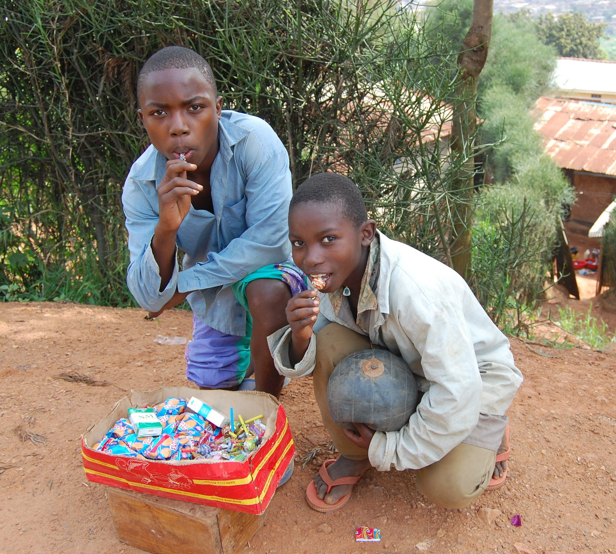 A Rwandan toy boy learning how to drink Beer